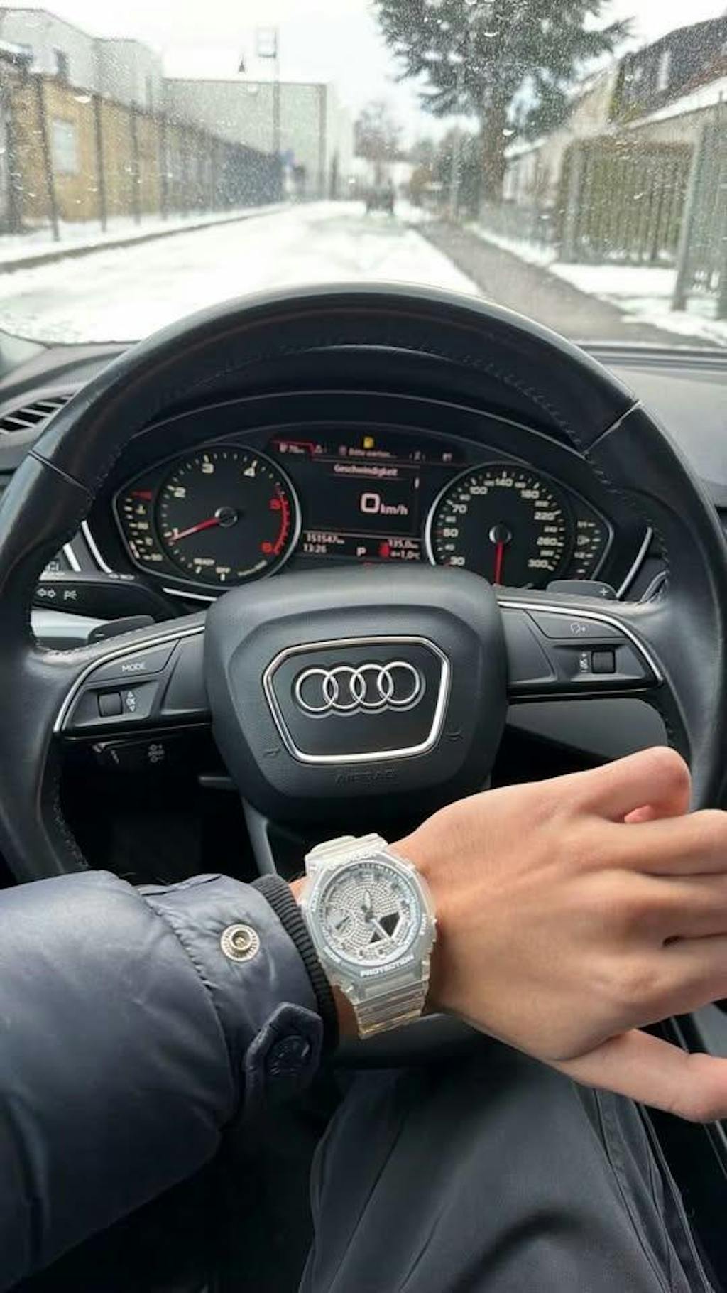 The original iced dial. Clear case with a full frosted silver dial that sparkles in any light. This is the piece that gets the double-takes. Lightweight, comfortable, and impossible to miss.